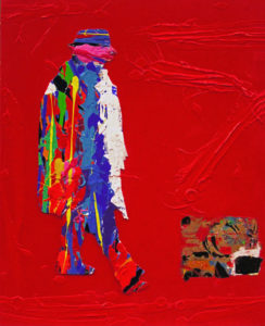 In questa Mostra dedicata a Federico Fellini “Il mio Sogno migliore” l’artista lo ritrae mentre avanza con il suo passo abituale, con il cappello di manifattura marchigiana e la sciarpa che avvolta al collo scende a segnare l’orlo del lungo cappotto. Natino Chirico dipinge la sagoma del regista sempre di profilo, come la cifra inconfutabile del suo stile personale: l’artista crea questa metafora iconologica come una matrice che nel suo reiterarsi celebra la figura Federico Fellini colorandola di rinnovata memoria.